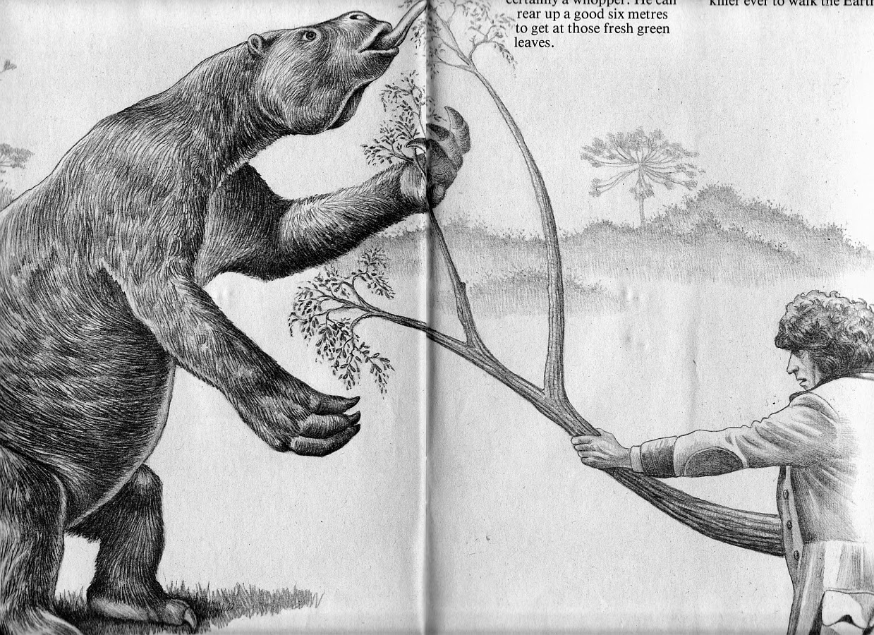 Megatherium (above). Given the animal's considerable size, it seems that the Doctor can add 'lifting impressively weighty timber' to his list of superhuman attributes. Cute though this is, I'd rather have seen the Doctor giving